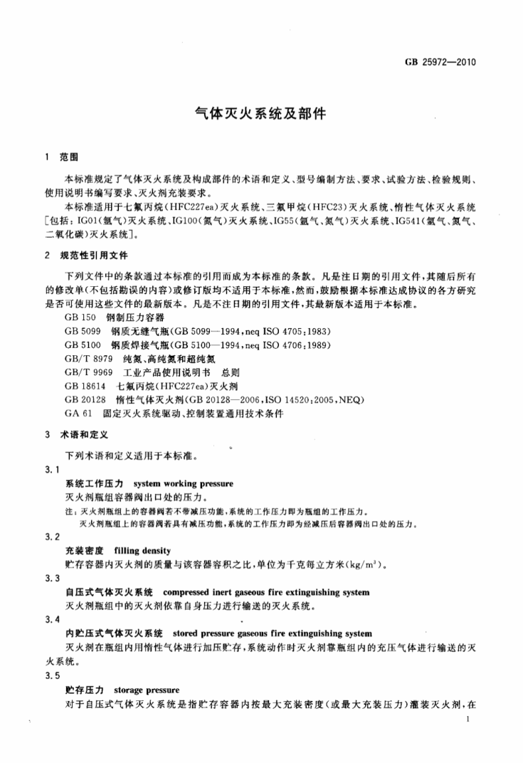 GB 25972-2010氣體滅火系統(tǒng)及部件