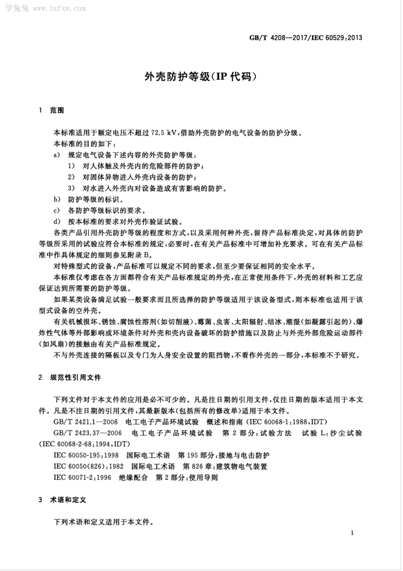 GB/T 4208-2017/IEC 60529:2013 外殼防護(hù)等級(jí)(IP代碼)